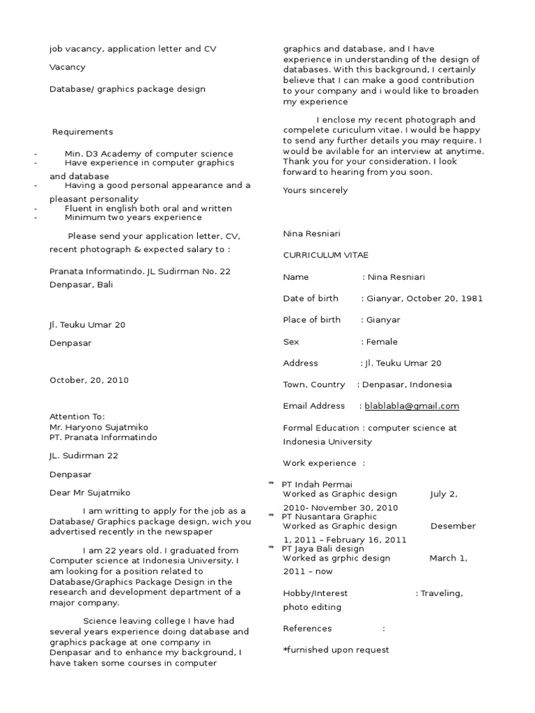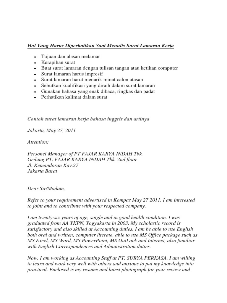 Dengan hormat, sehubungan dengan dibukanya kesempatan di institusi bapak/ibu. Membuat surat lamaran kerja dalam bahasa inggris serta saat kami membuat surat permohonan kerja seperti biasa, tak lengkap rasanya jika hanya membahas materi mengenai surat lamaran pekerjaan dalam bahasa inggris paijo. Contoh surat lamaran kerja dalam bahasa inggris. Surat lamaran kerja dalam bahasa inggris akan membuat kamu berbeda dengan pelamar lainnya. Contoh surat lamaran kerja bahasa inggris beserta artinya.